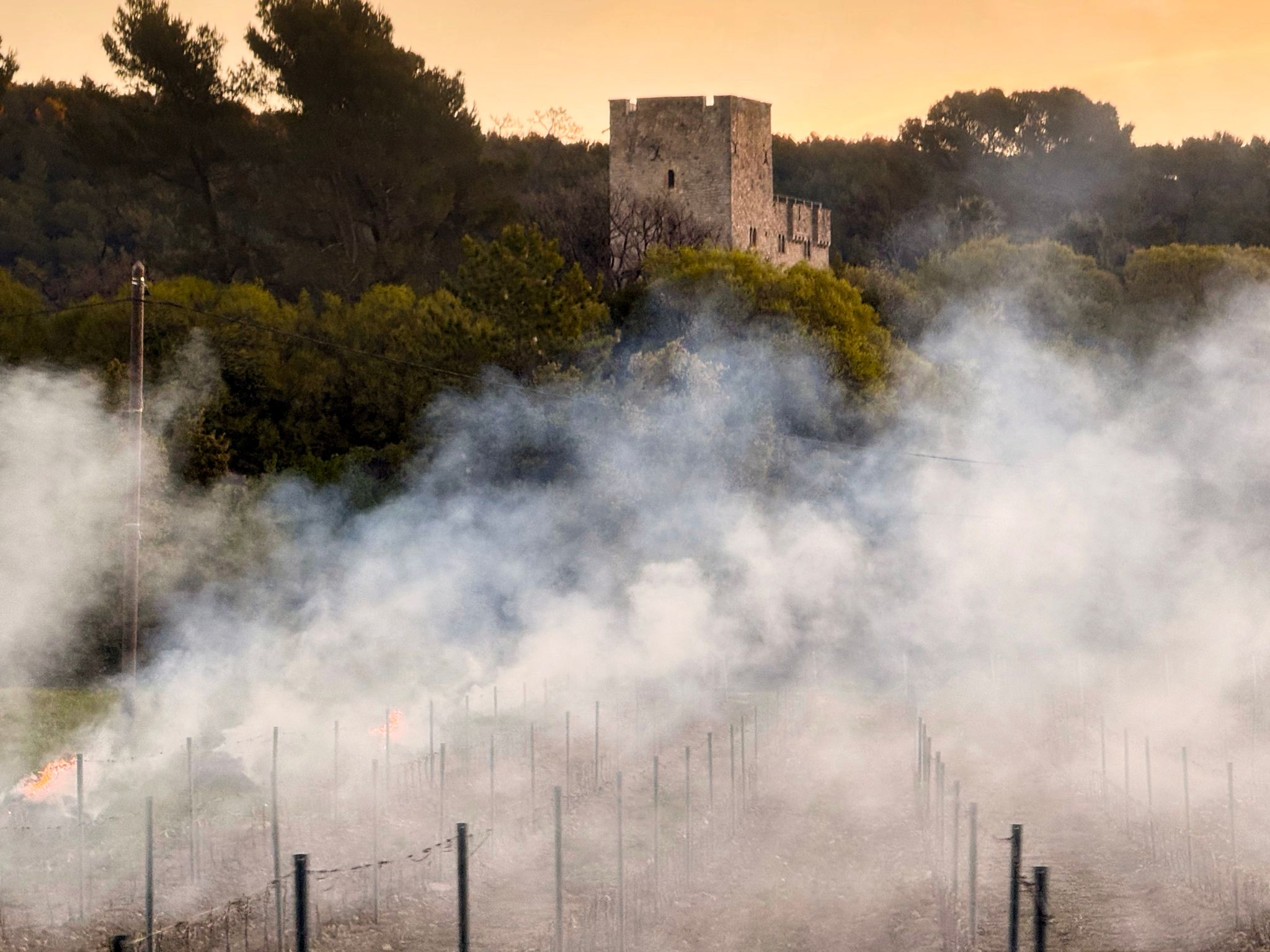 We had three route possibilities. Jenn wanted to do the hardest one, so we did. We rolled out of Le Thoronet in the shadow of its tacky blinking sign and into the darkness of Provence. The sun rose as we descended into the misty vineyards of Figanieres. Nope. Not mist. Burn piles on a calm morning filled the valley with suffocating smoking. I could still smell it on me halfway through the day as we climbed through the Les Gorges du Verdon. Our planned route was closed by a landslide, but the north traverse of the gorge was open, and busy. I was a bit concerned before lunch: we were barely on schedule. But as Jenn later pointed out, half of the climbing was in the first third of the day, and we recouped the deficit rapidly, getting to dinner well before the restaurants started serving. Oh well, we grabbed some crêpes, scarfed cold pizza, and made the 10-mile familiar climb out of Luberon and toward home. The Trace Velocio, unlike the Fleche Velocio, has no idle restrictions, so we had plenty of time for sleep after descending the south side of the Gorges de la Nesque at sunset and rolling into Caromb as the light faded. Our trace, like that of all the other trace and fleche teams, ended in Sault, at the traditional Paque-en-Provence gathering of randonneurs. Tomorrow, we'll pack up and head to Colorado. Looking forward to this year's RMCC fleche!